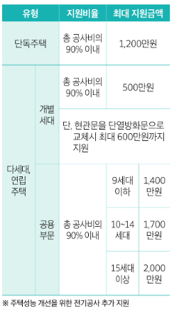 💰 단독주택: 총공사비의 90% 지원 (최대 1,200만 원)
