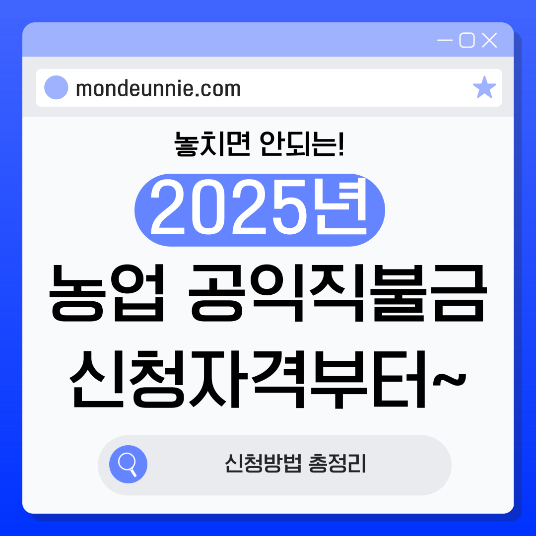 2025년 농업직불금 신청을 계획하고 있다면 자격 요건을 미리 확인하고, 신청 기간 내 반드시 신청하시길 바랍니다.
