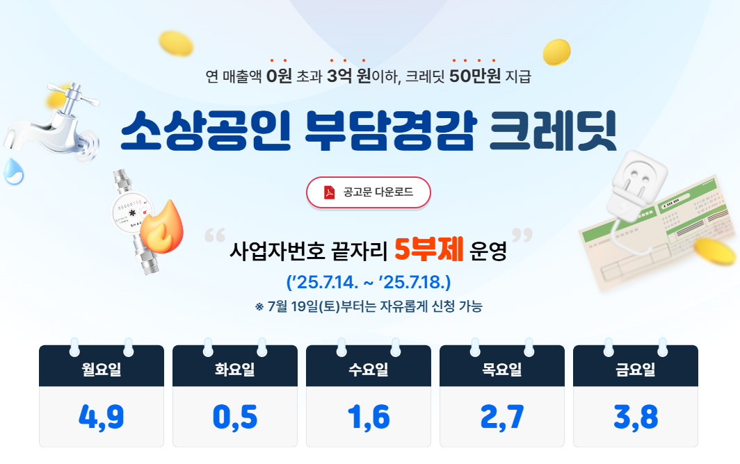 소상공인의 경영 부담을 덜어주기 위해 ‘소상공인 부담경감 크레딧’ 제도가 시행되고 있습니다. 전기요금, 가스요금, 수도요금, 4대 보험료 등 고정비용에 대한 부담을 경감할 수 있는 제도로, 사전 심사를 거쳐 일정 조건을 충족하면 50만원 크레딧 혜택을 받을 수 있습니다. 본 글에서는 지원 대상부터 구체적인 혜택, 신청 방법까지 꼼꼼하게 안내드립니다. 특히 준비해야 할 서류와 유의사항까지 포함했으니 끝까지 확인하시기 바랍니다.
